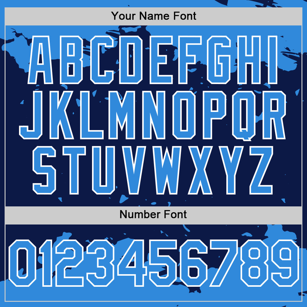 Custom Navy Powder Blue-White Splash Art 3D Pattern Design Bomber Full-Snap Varsity Letterman Hoodie Jacket