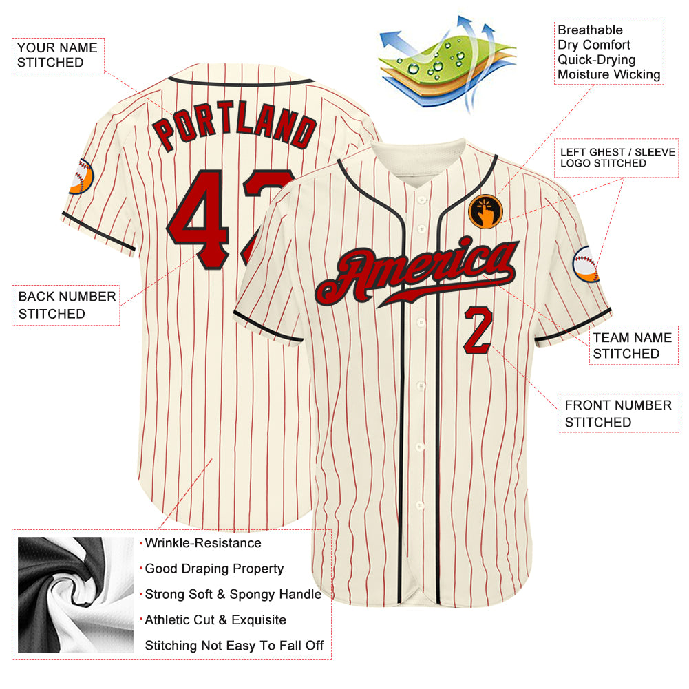 Custom Cream Red Pinstripe Red-Black Authentic Baseball Jersey