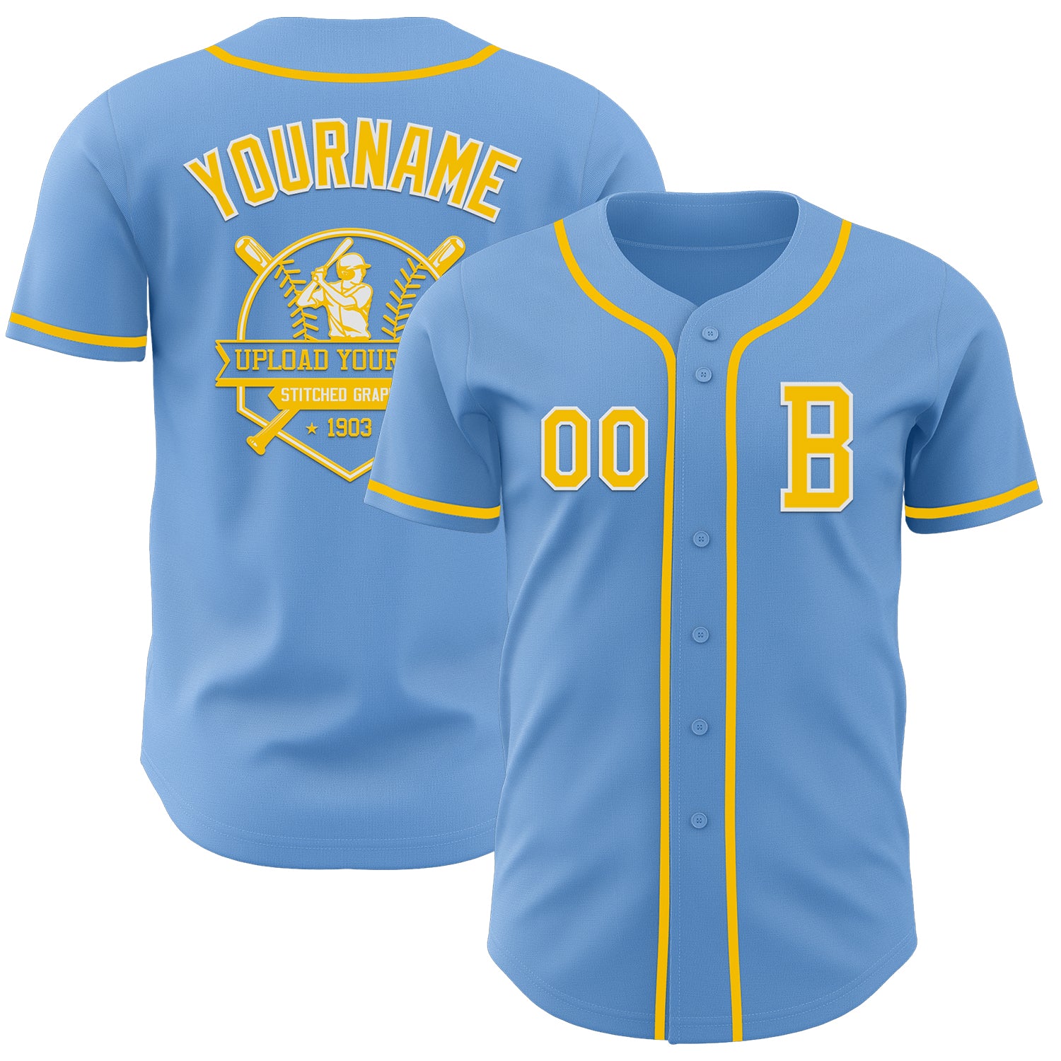 Custom Light Blue Yellow-White Authentic Baseball Jersey