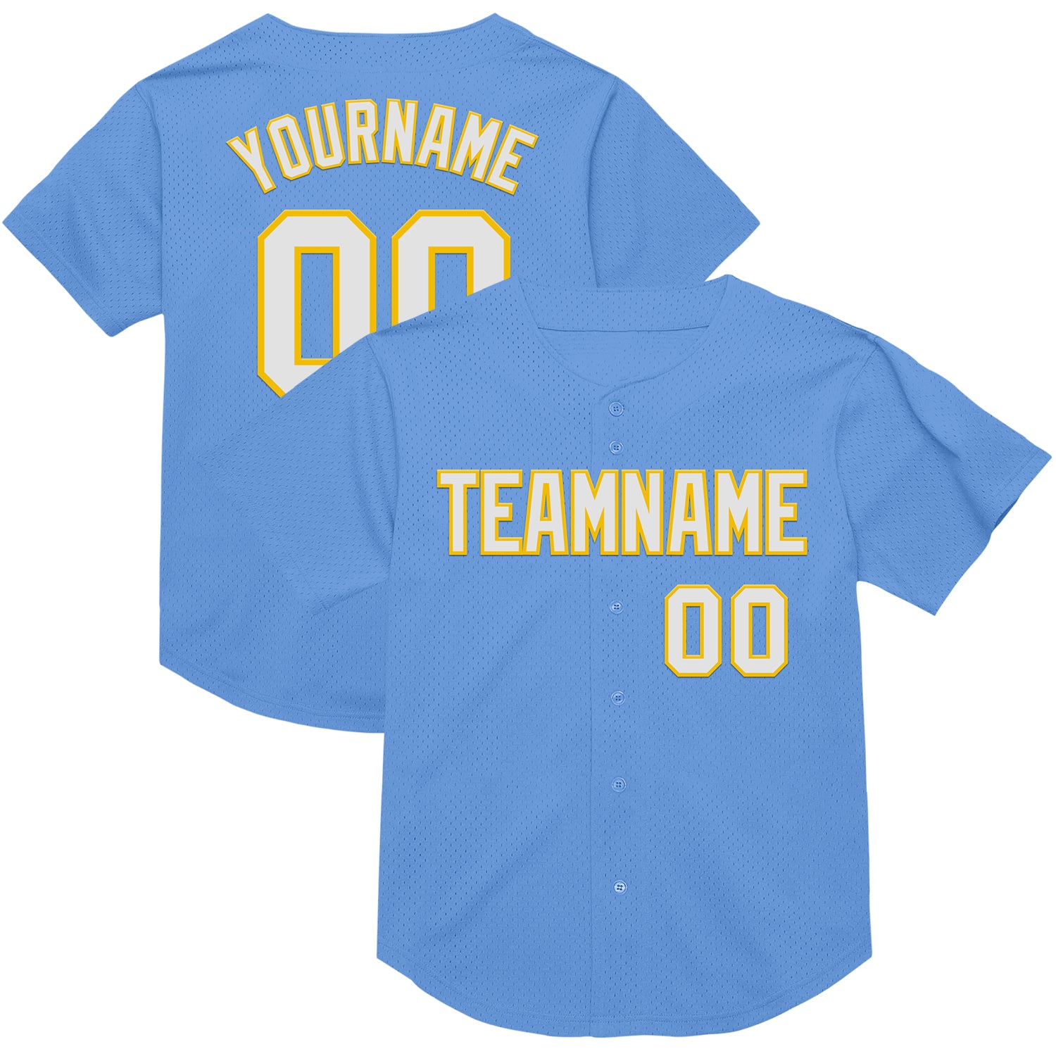 Custom Light Blue White-Yellow Mesh Authentic Throwback Baseball Jersey