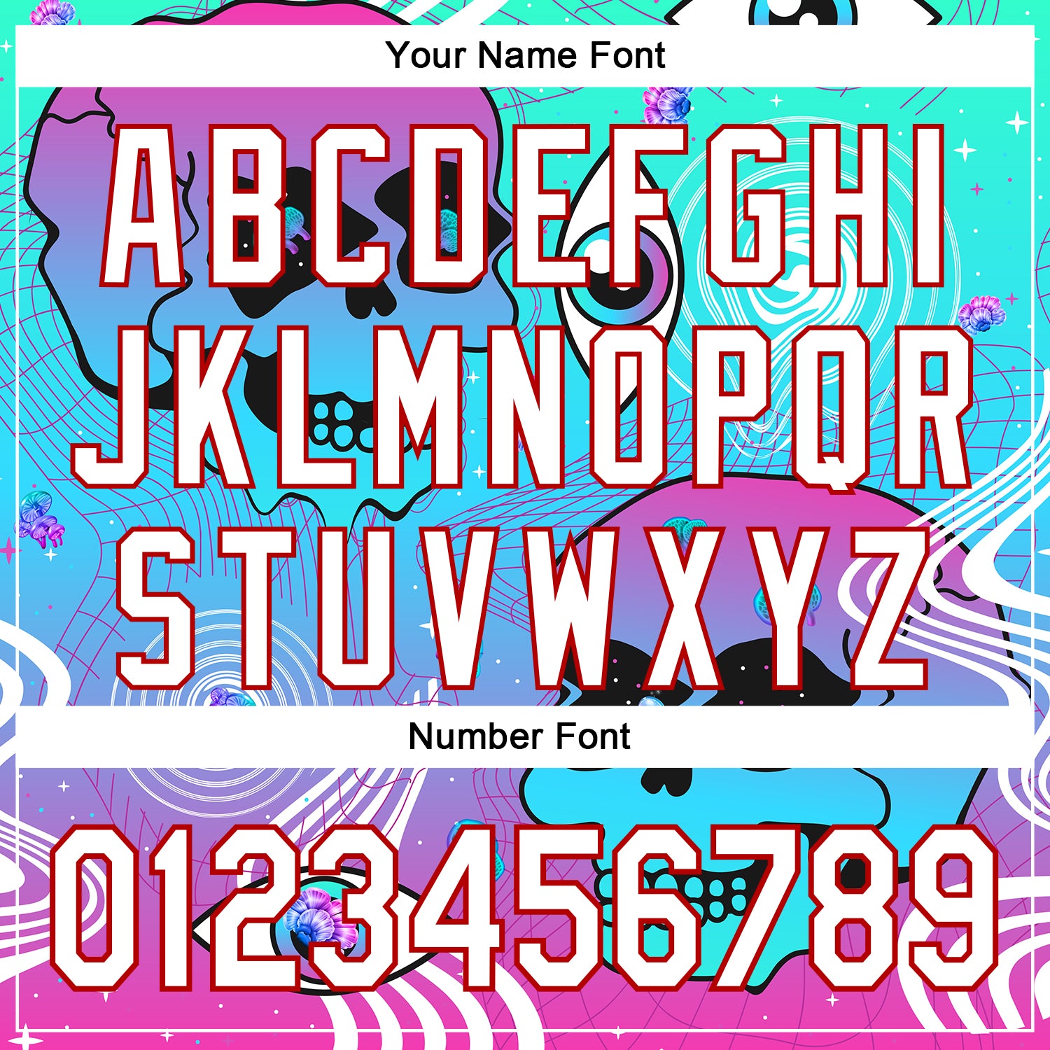 Custom Blue White-Red 3D Pattern Design Trippy Magic Mushrooms Skull Authentic Baseball Jersey