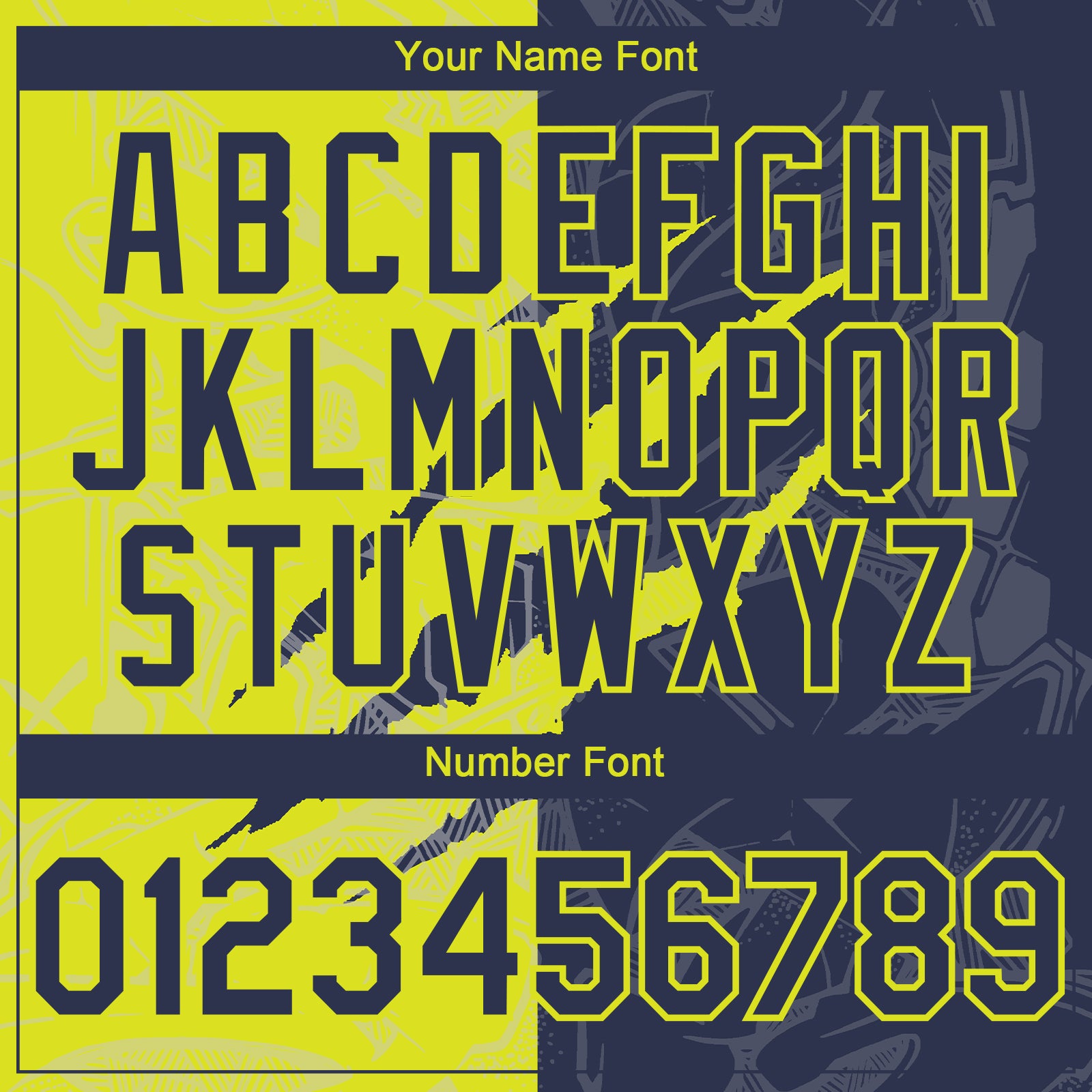 Custom Graffiti Pattern Navy-Neon Yellow 3D Scratch Authentic Baseball Jersey
