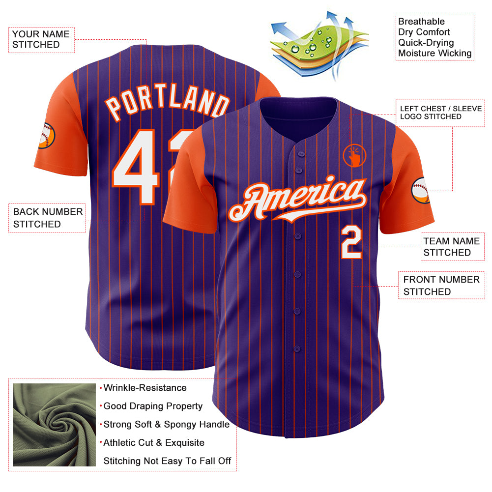Custom Purple Orange Pinstripe White Authentic Two Tone Baseball Jersey