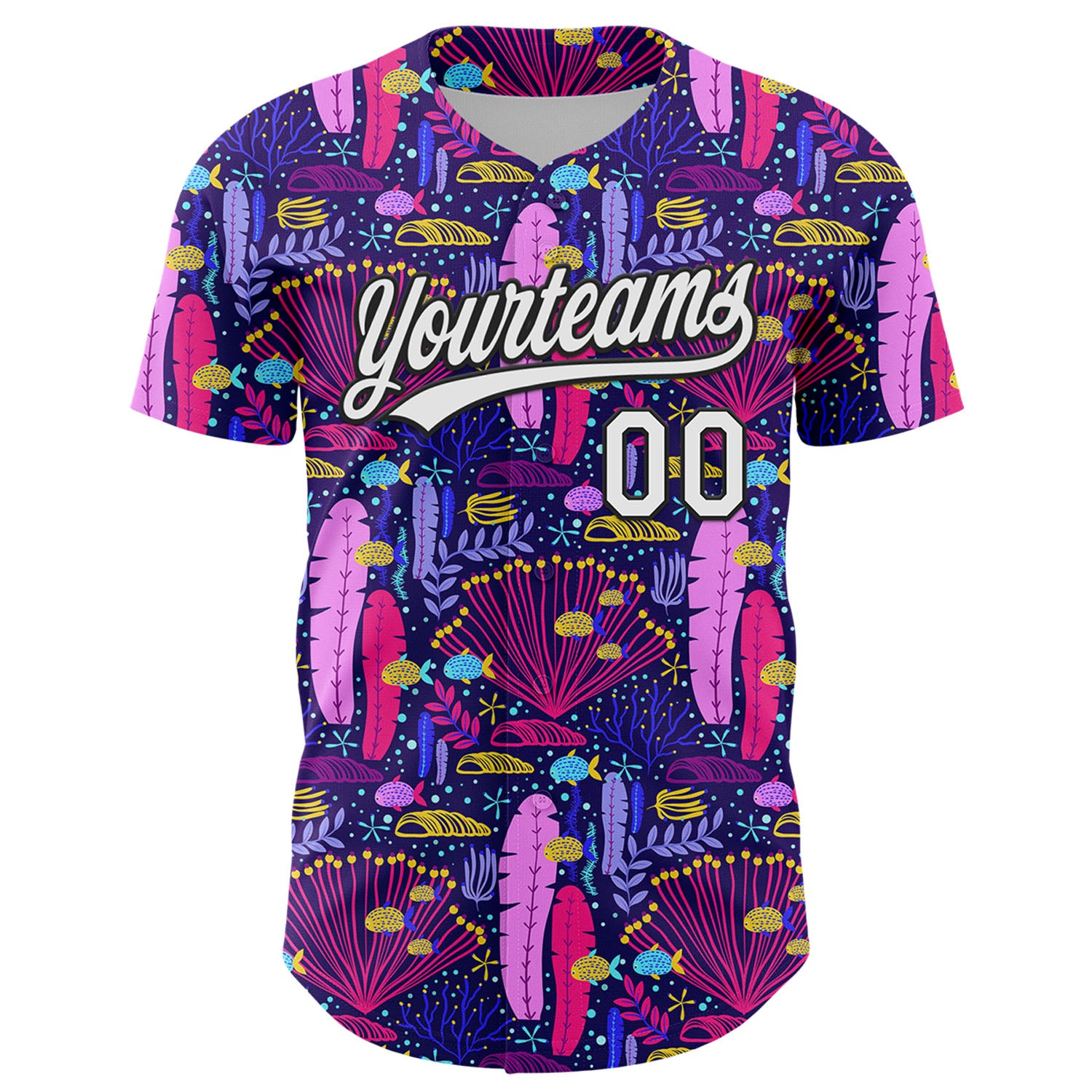 Custom Purple White-Black 3D Tropical Hawaii Plant Authentic Baseball Jersey