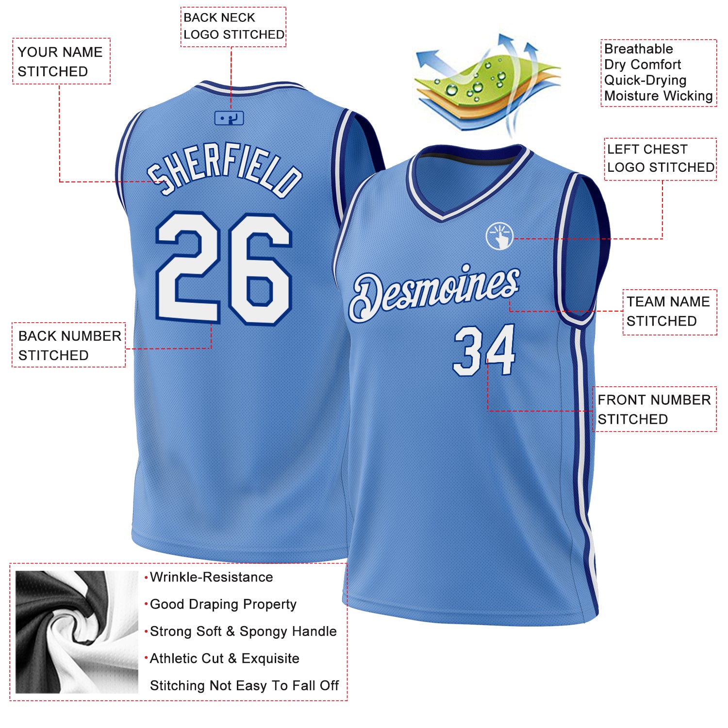 2. Stitched team or player name and numbers