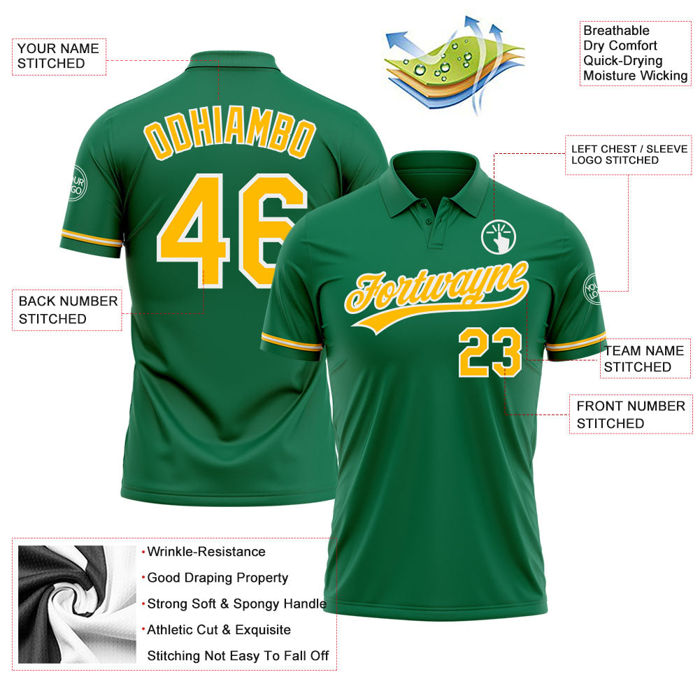 Custom Kelly Green Gold-White Performance Vapor Golf Polo Shirt