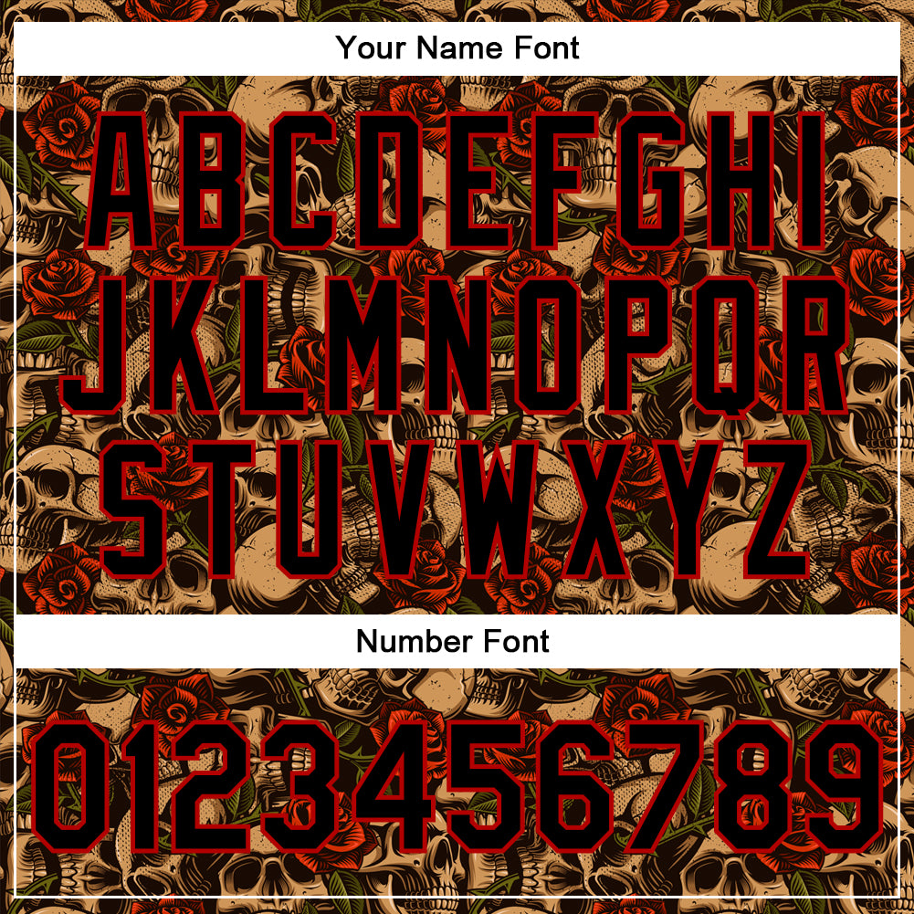 Custom Black Red Rose Skull Fashion 3D Bomber Full-Snap Varsity Letterman Jacket