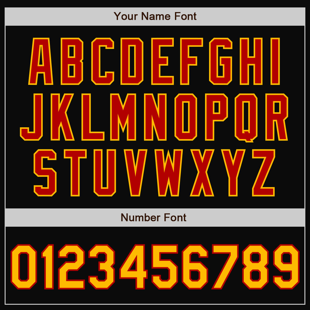 Custom Black Gold-Red Bomber Full-Snap Varsity Letterman Two Tone Jacket