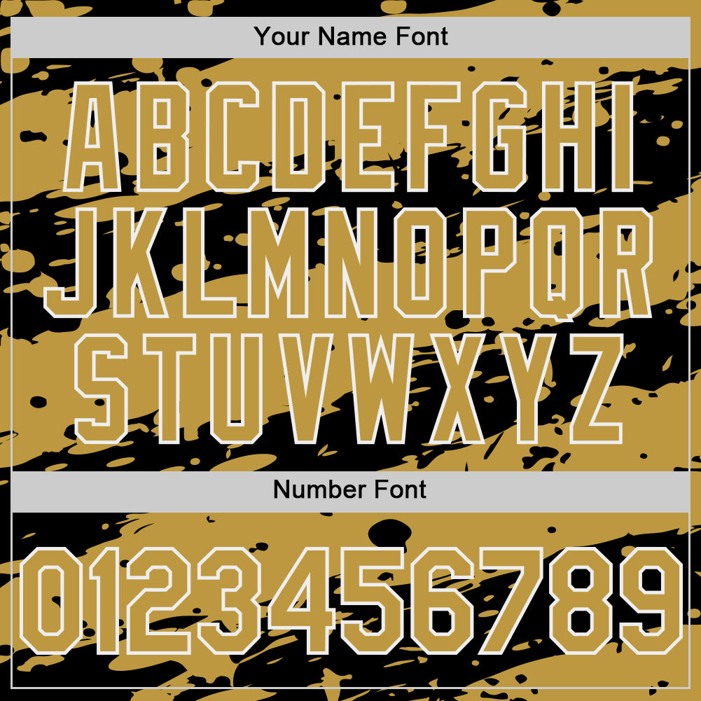 Custom Black Old Gold-White Splash 3D Pattern Design Bomber Full-Snap Varsity Letterman Hoodie Jacket