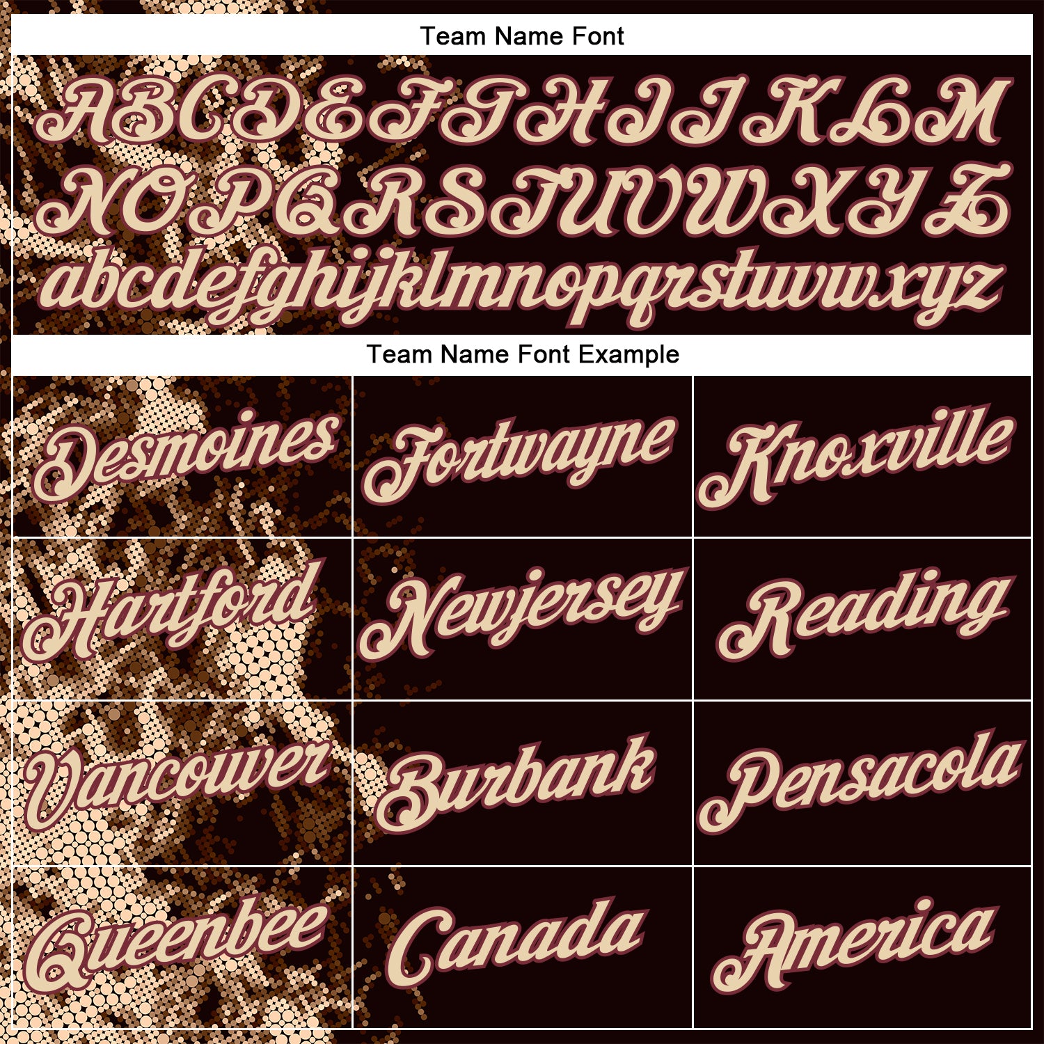 2. Printed team or player name and numbers
