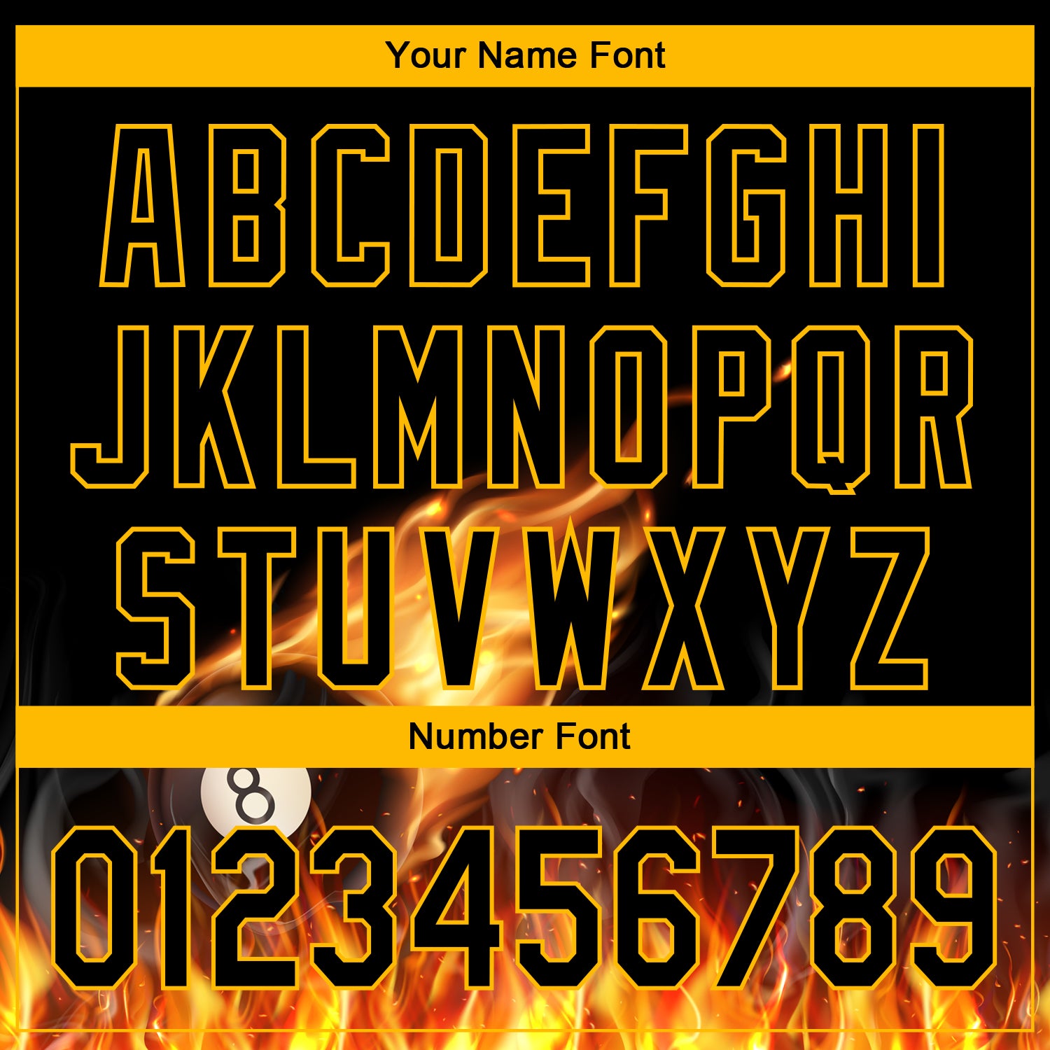 Custom Black Yellow 3D Pattern Design Flame Billiards 8 Ball Performance Polo Shirt