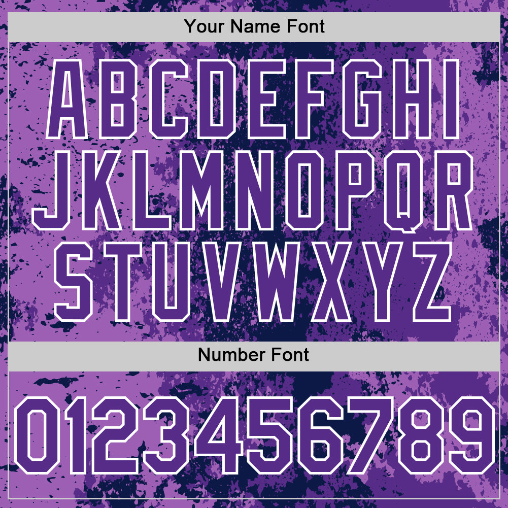 Custom Navy Purple-White 3D Pattern Design Bomber Full-Snap Varsity Letterman Hoodie Jacket