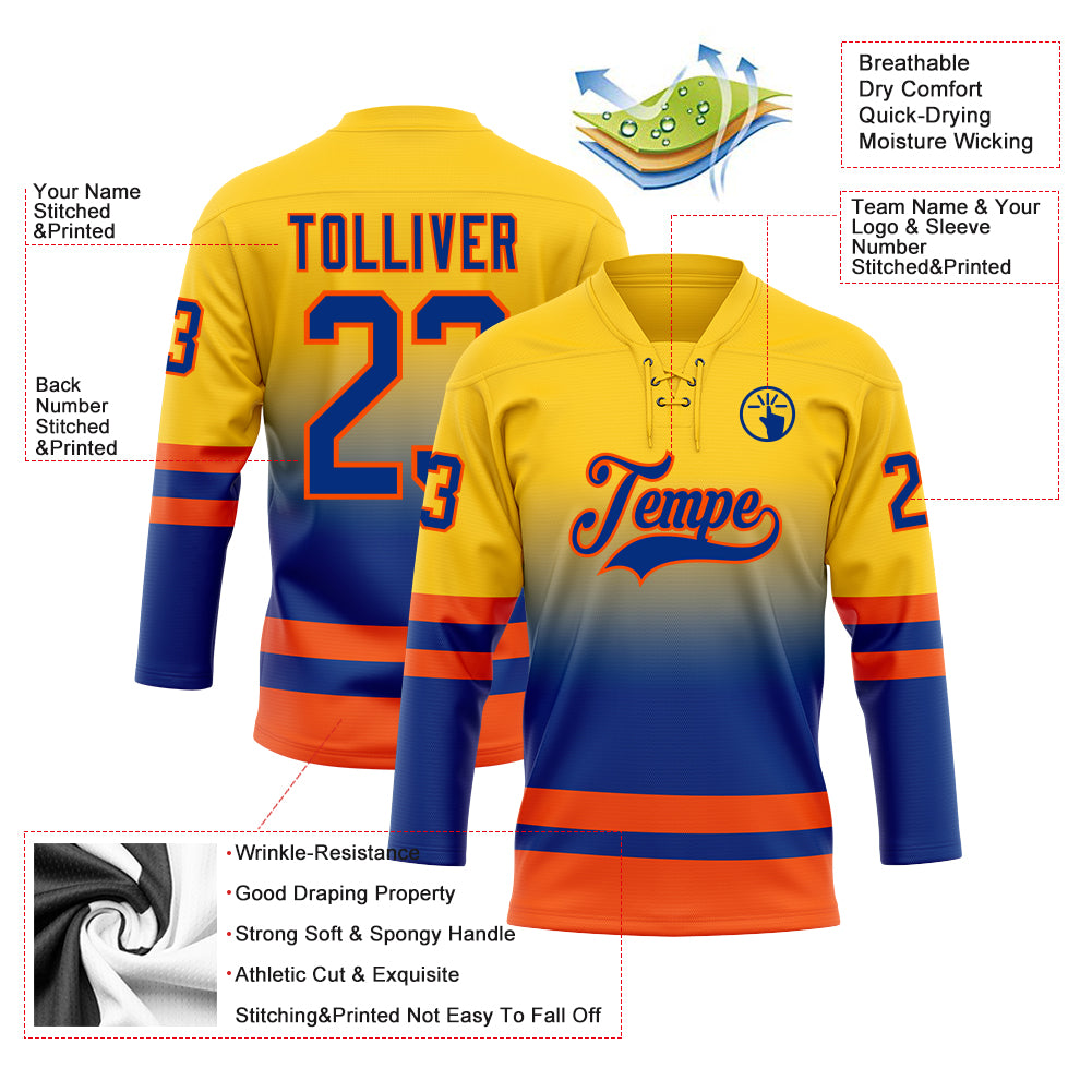 Custom Yellow Royal-Orange Fade Fashion Hockey Lace Neck Jersey
