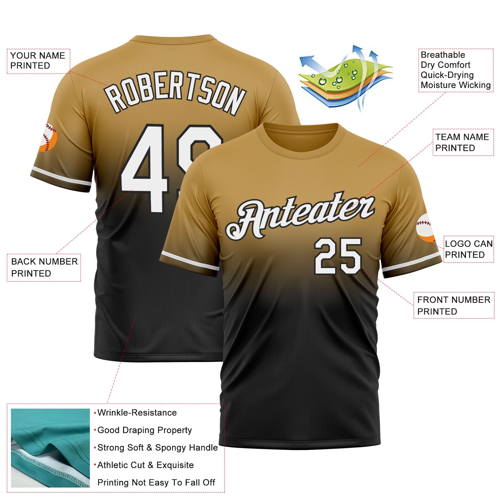 Custom Old Gold White-Black Fade Fashion Performance T-Shirt