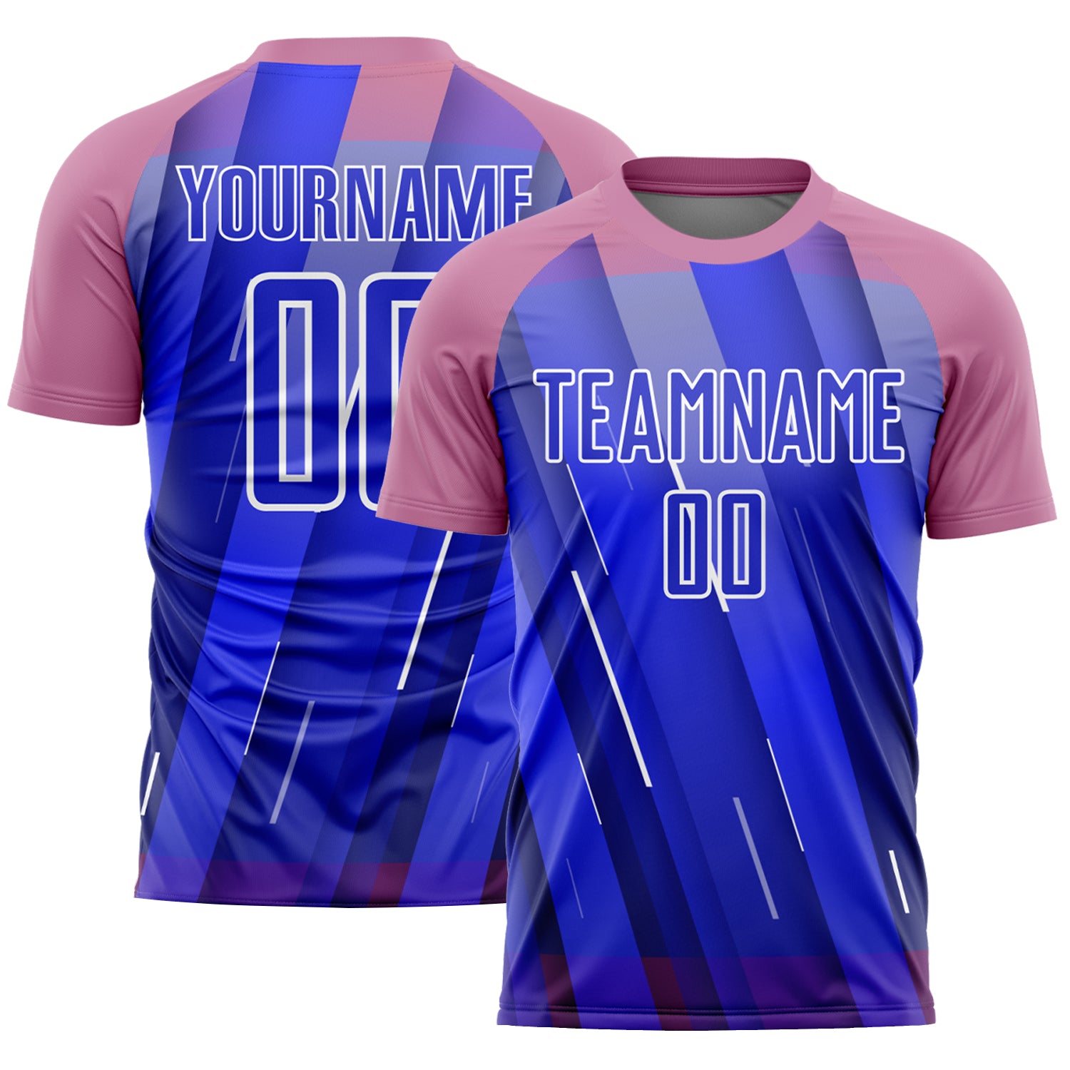 Custom Royal Medium Pink-White Lines Sublimation Soccer Uniform Jersey