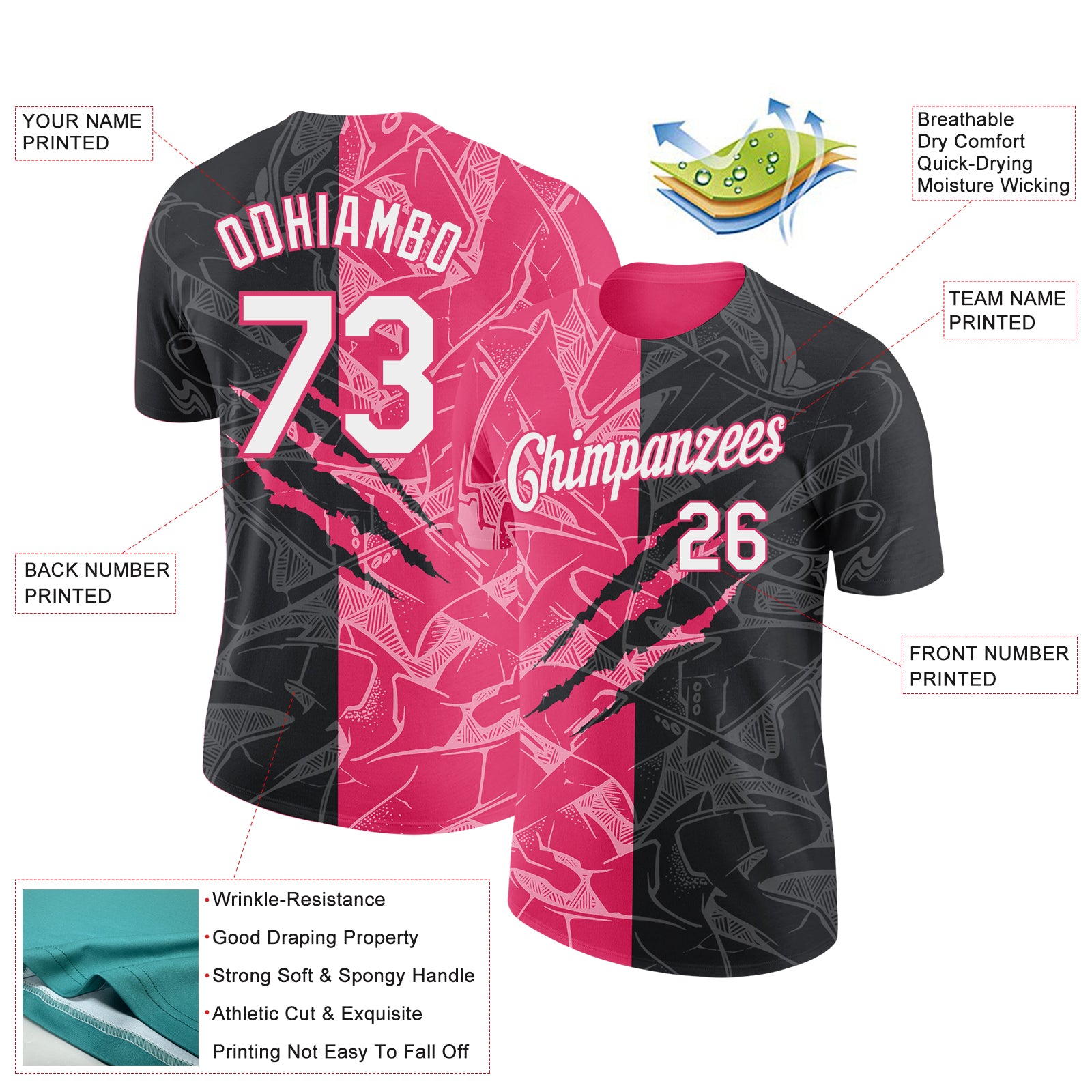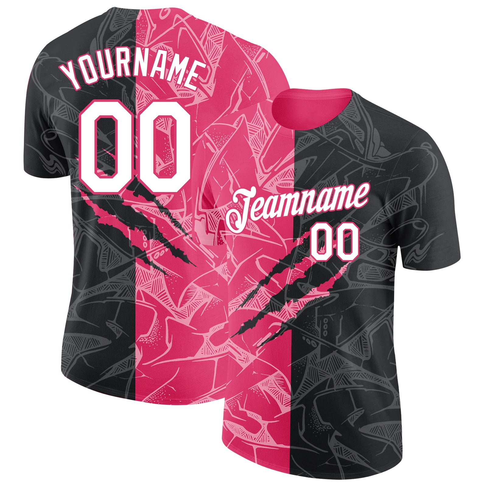 Custom Graffiti Pattern White Black-Neon Pink Scratch 3D Performance T-Shirt