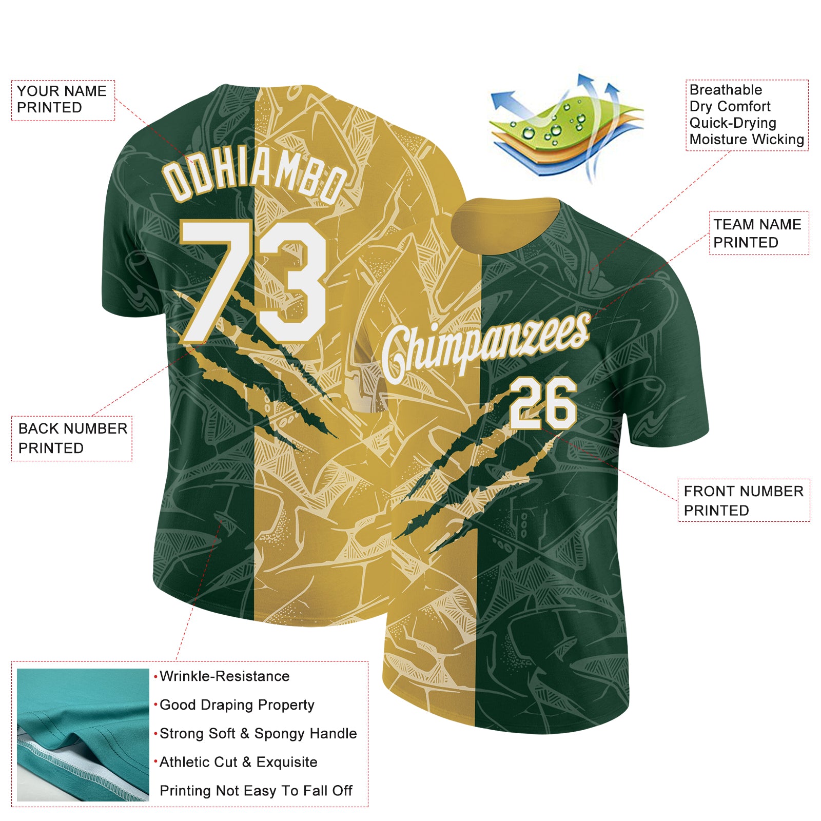 Custom Graffiti Pattern White Green-Old Gold Scratch 3D Performance T-Shirt