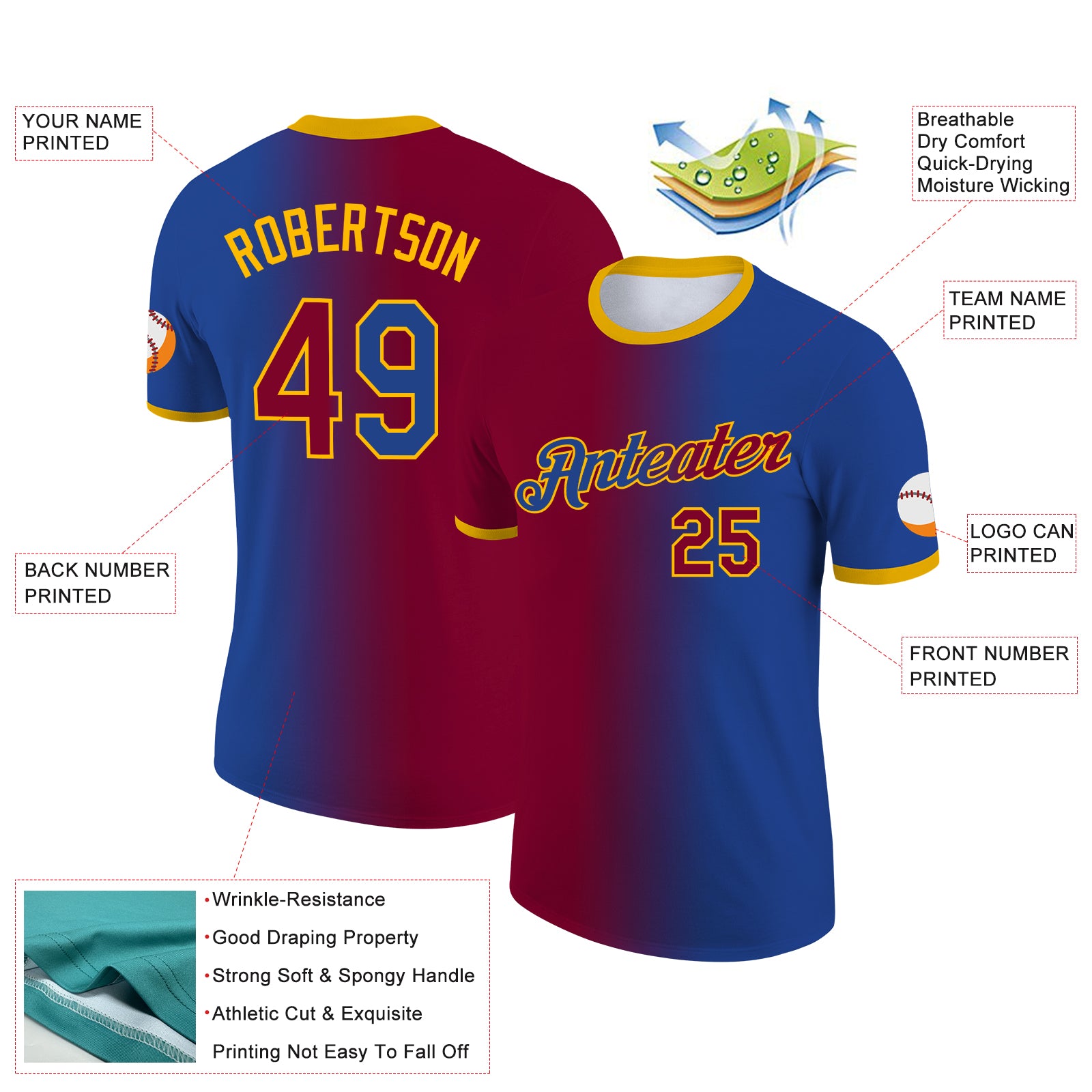 Custom Royal Maroon-Gold Gradient Fashion Performance T-Shirt