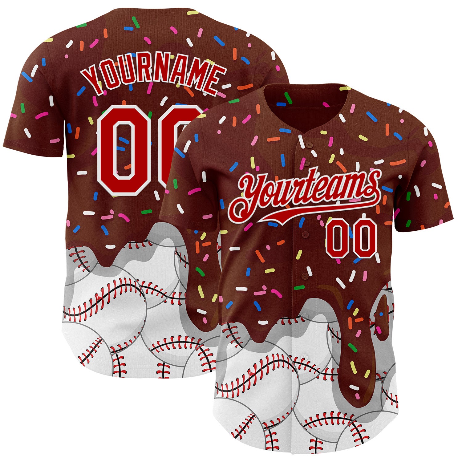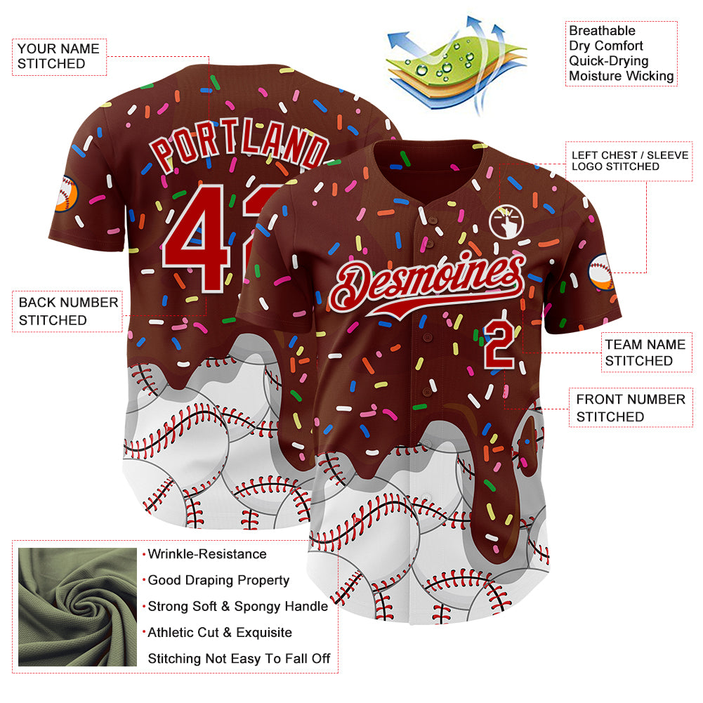 Custom Brown Red-White 3D Pattern Design Foodie Dripping Ice Cream Authentic Baseball Jersey