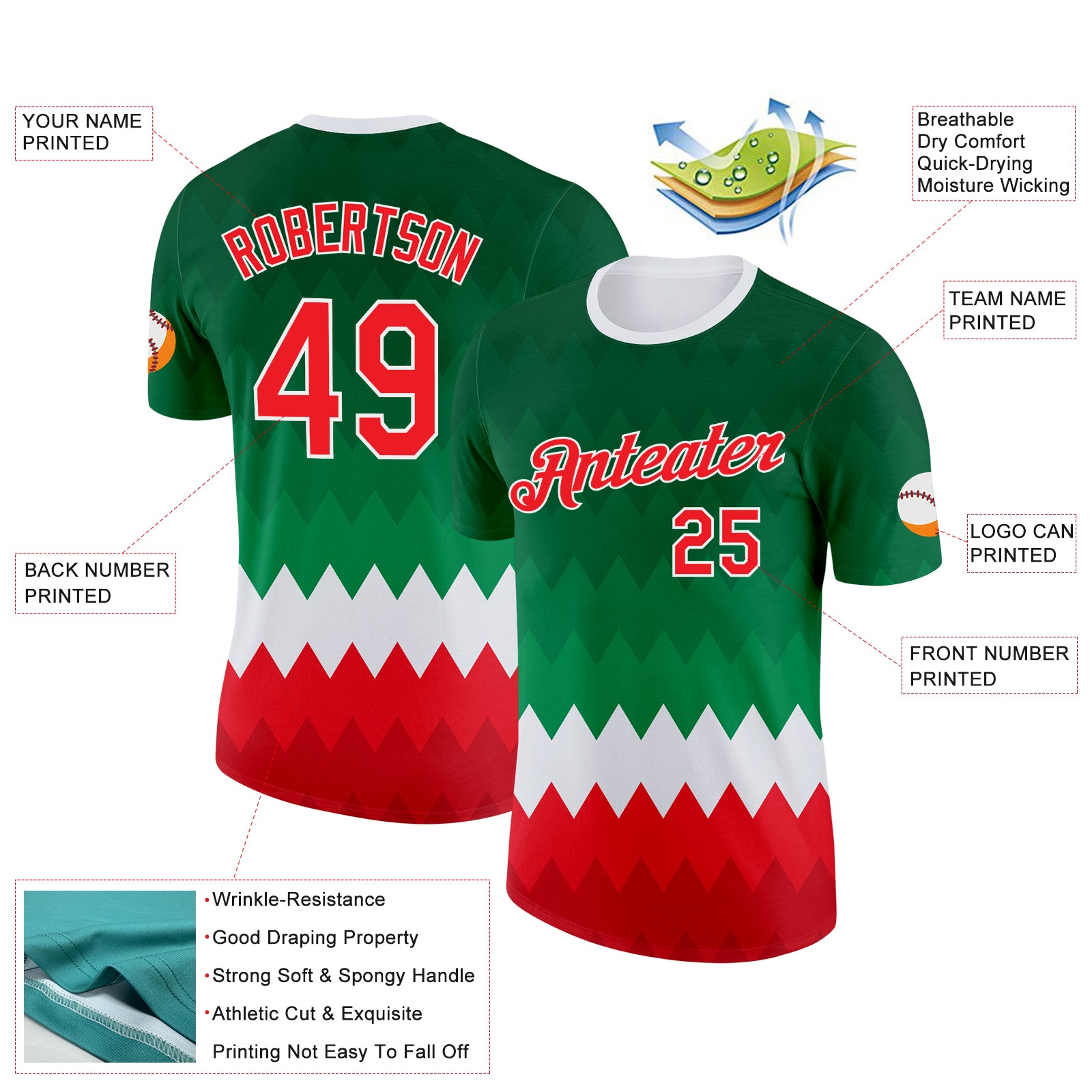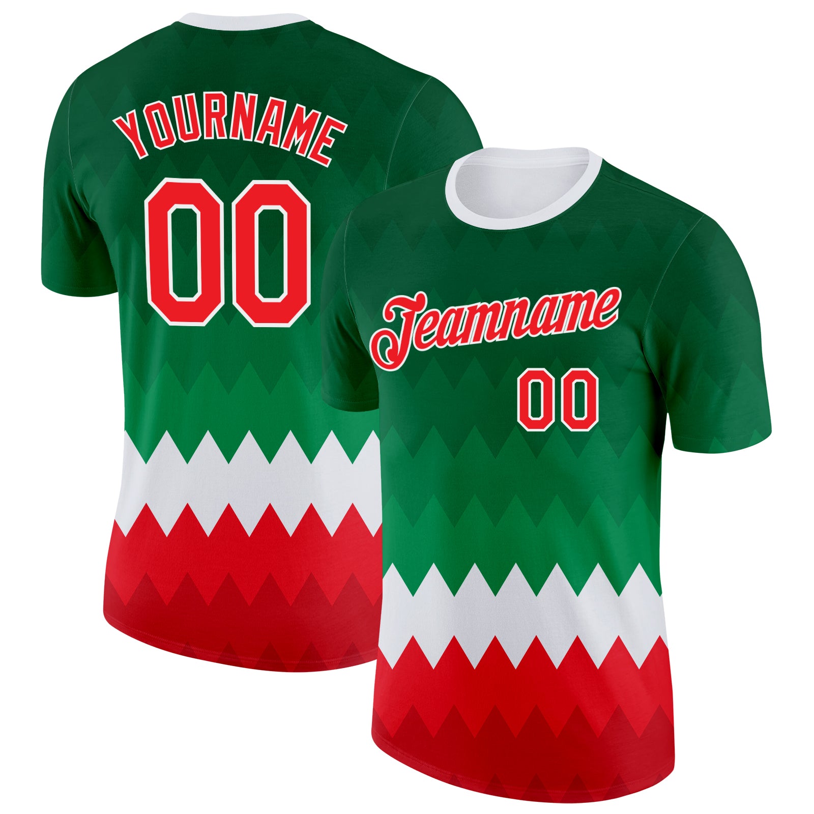 Custom Green Red-White Italy Geometric Shape Performance T-Shirt
