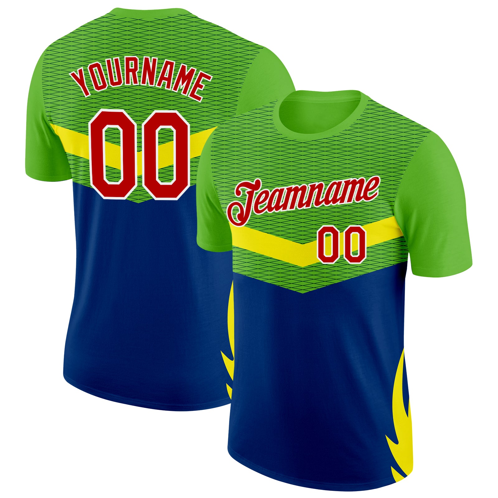 Custom Green Red Yellow Blue-White Brazil Geometric Shape Performance T-Shirt