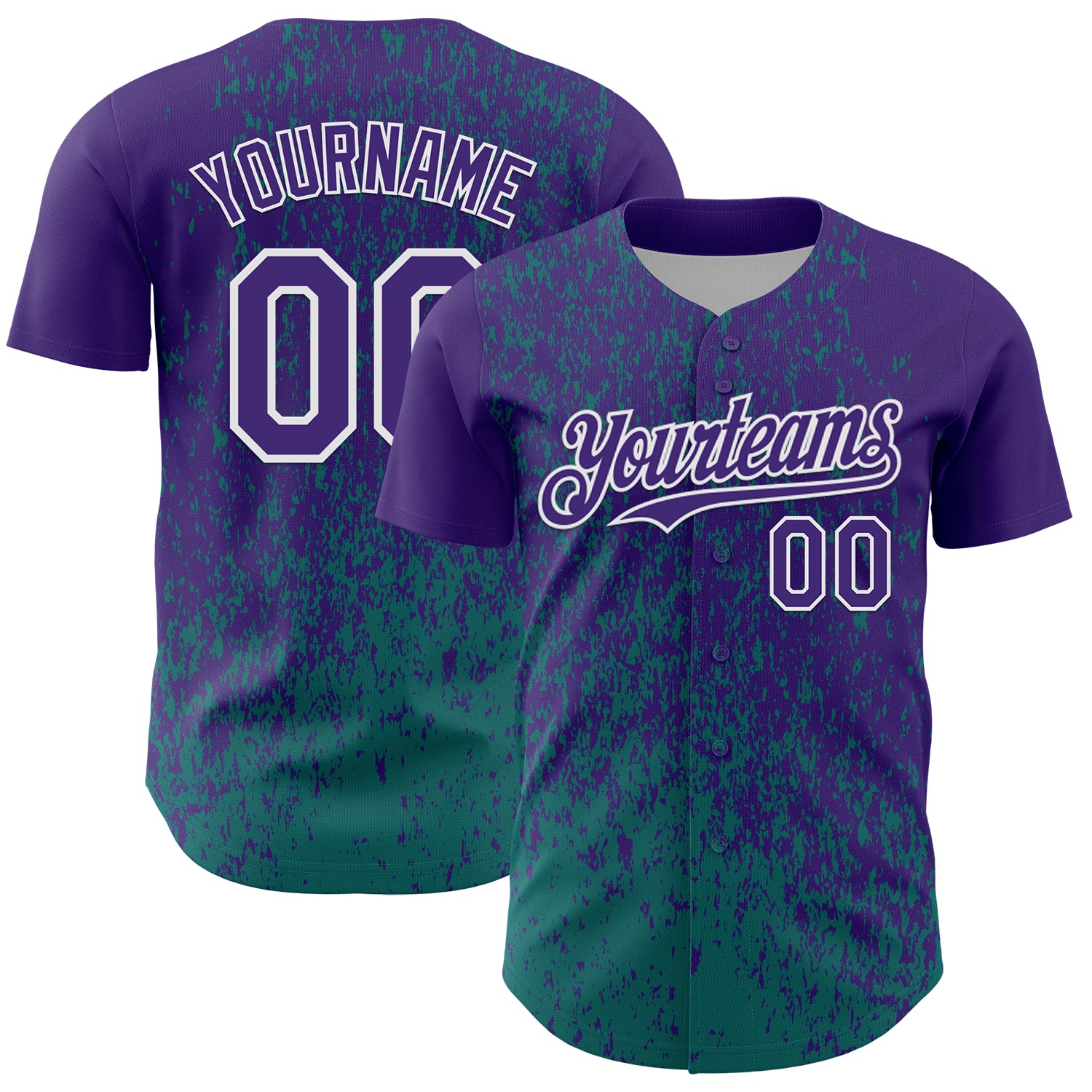 Custom Purple Teal-White 3D Pattern Design Abstract Fragment Splatter Authentic Baseball Jersey
